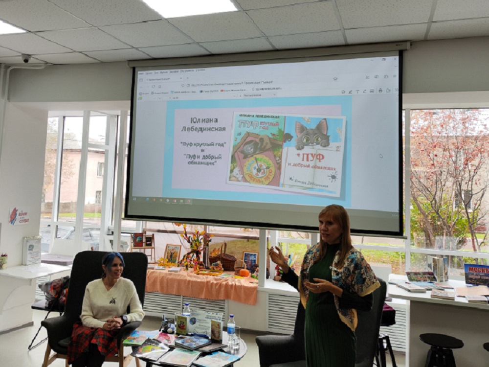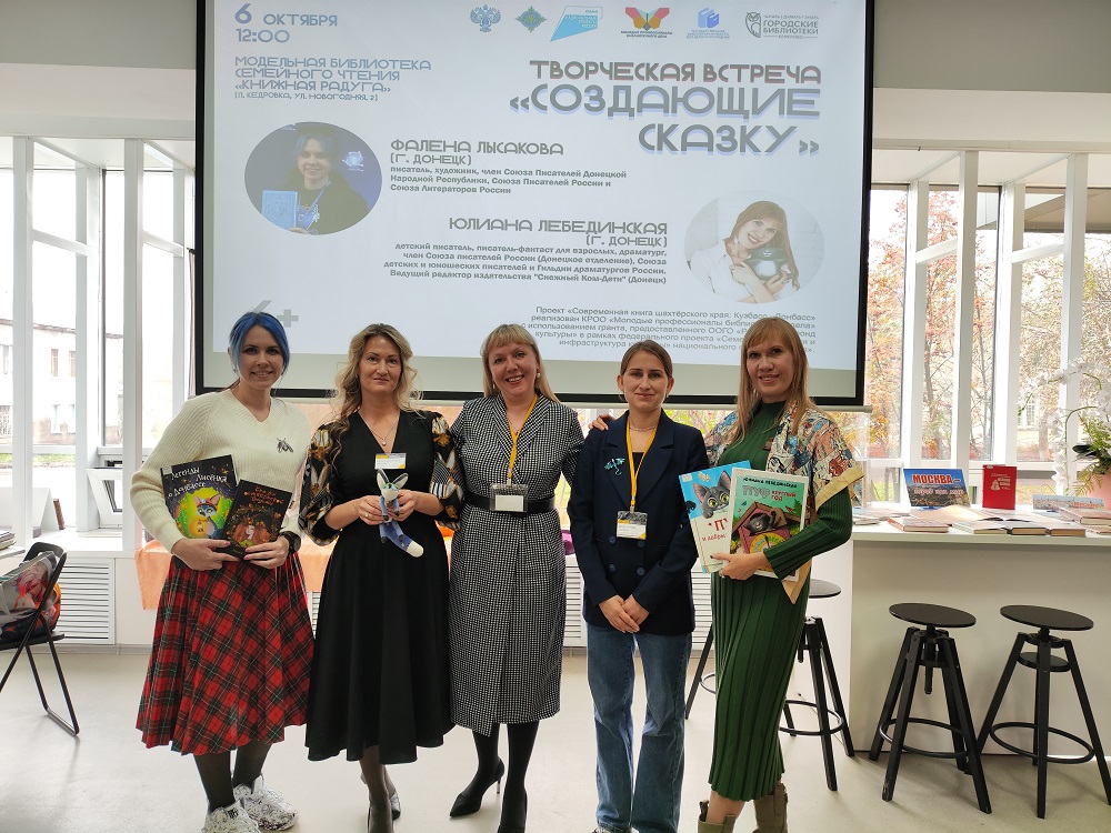 6 октября в модельной библиотеке семейного чтения «Книжная радуга» (ж.р. Кедровка, ул. Новогодняя, 2) состоялась творческая встреча «Создающие сказку» с писателями из Донецка.