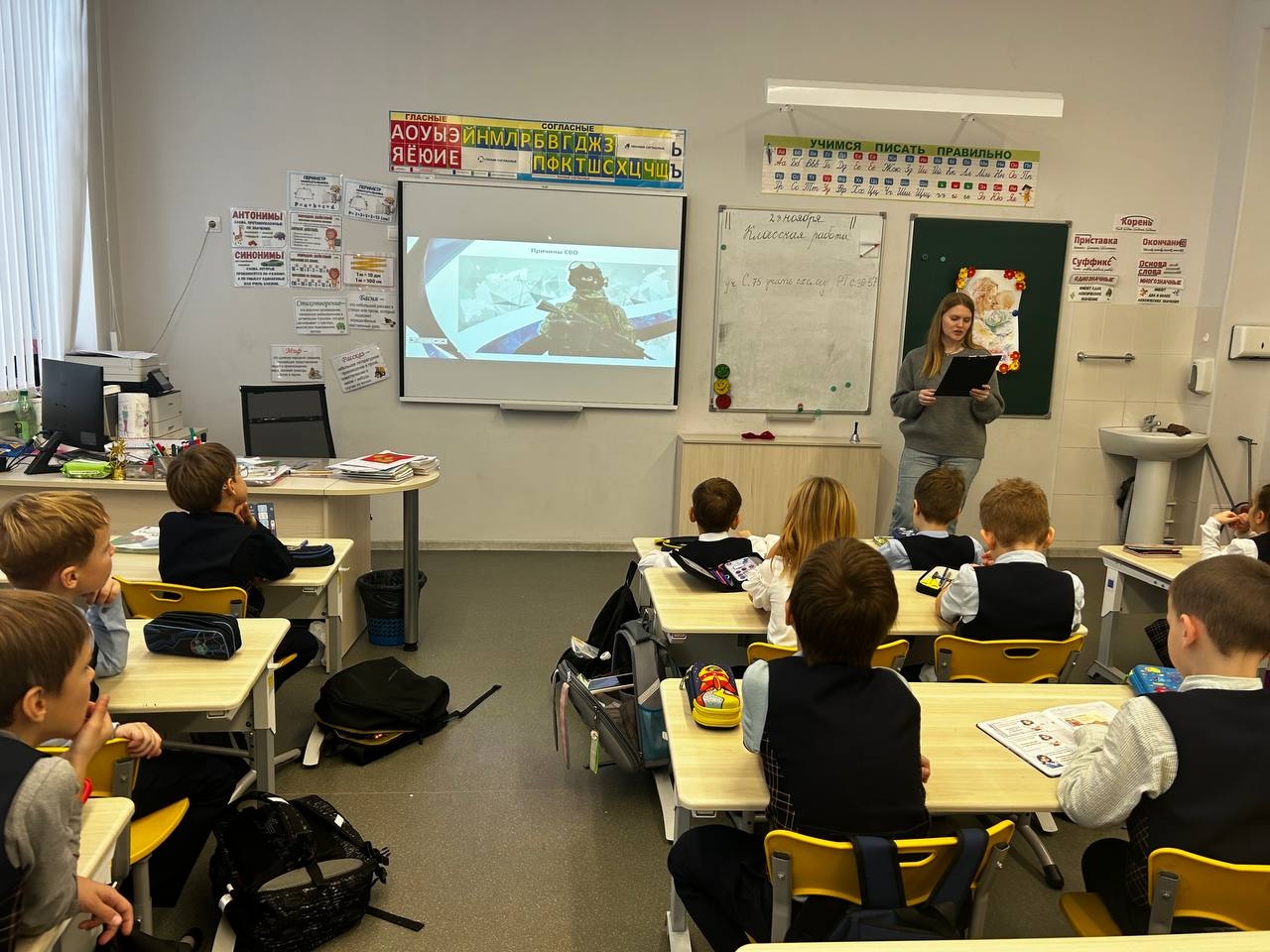Школьники с большим вниманием и искренней гордостью слушали рассказы о подвигах современных защитников, осознавая значимость патриотизма, долга и уважения к тем, кто стоит на страже мира и безопасности нашей страны.