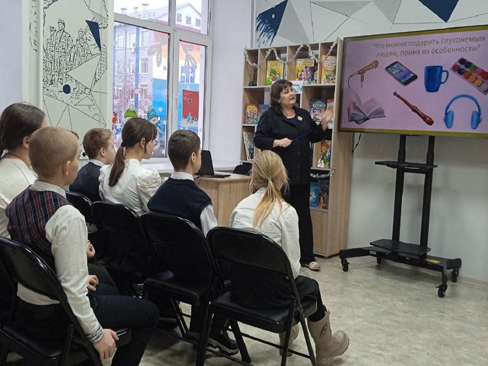 В АРТ-библиотеке для школьников был организован познавательный час «Сильные духом», посвящённый жизни глухих и слабослышащих людей. Особое внимание было уделено историческому примеру трудового подвига работников кемеровских учебно-производственных мастерских в годы Великой Отечественной войны.