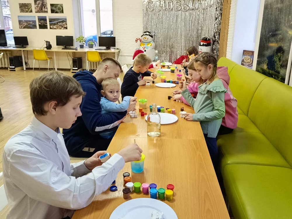- стали волшебными художниками и раскрасили гипсовые фигурки — милых пингвинят, праздничные конфеты и даже машинки с ёлками;