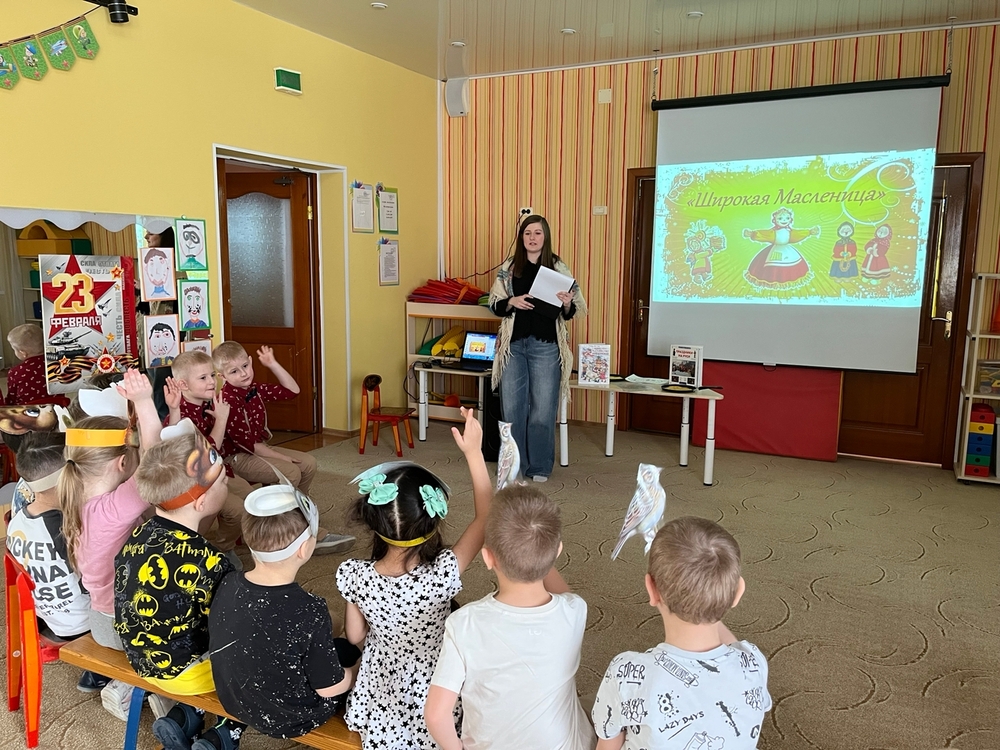 Ребята с интересом узнали о происхождении названия «Масленица», о глубоком символизме румяных блинов, словно солнышки, несущих тепло и свет, и о трогательных ритуалах проводов холодной зимы.