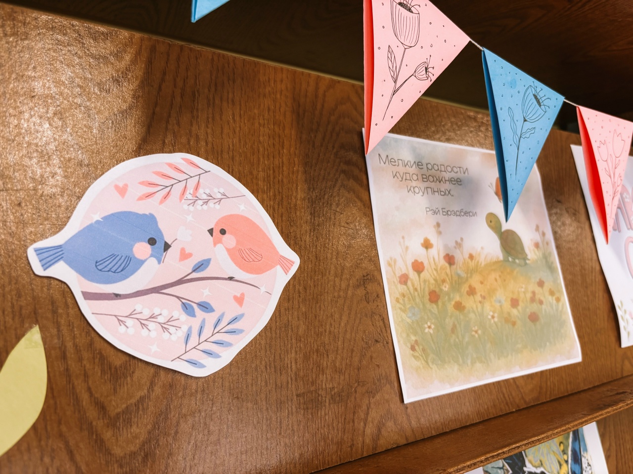 Особое место в экспозиции занимают произведения, которые учат замечать прекрасное в каждом дне, видеть, как оживает природа, и слышать её голос на страницах любимых книг.