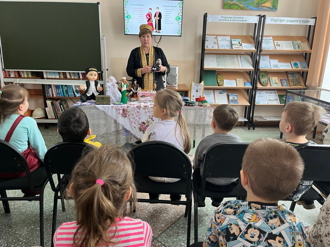 20 марта 2026 года в рамках городского конкурса социальных проектов «Кемерово мультикультурный» в Библиотеке им. Г. Е. Юрова (пр. Шахтеров, 37б) прошёл фольклорный час «Сердечное тепло татарского очага»! Воспитанники МАДОУ №91 «Детский сад» отправились в захватывающее путешествие по страницам богатой истории татарского народа. Они провели чудесный день, изучая уникальные экспонаты комнаты татарского быта «Ак Калфак» из Детской библиотеки им. А. М. Береснева (бр. Строителей, 7). Ребята узнали много нового и интересного о традициях, культуре и повседневной жизни татарского народа благодаря увлекательным рассказам руководителя Алии Рашитовны. Она поделилась секретами, как одевались дети и взрослые, пояснила, что слово «изю» обозначает специальную манишку, надеваемую как под нарядный сарафан, так и сверху, а вовсе не изюм. Особое восхищение вызвали беседы о красивых женских головных уборах и их значениях. Дети были удивлены тем, что пугающее малышей слово «Бабай» на самом деле означает «дедушка». Им понравилось узнавать, как звучат привычные приветствия и приглашения на чай на татарском языке, подчеркивающие гостеприимство народа. Особую атмосферу создавали ароматный чай из самовара и вкуснейшие угощения, такие как хворост, рогалики и знаменитая лепешка кыстыбай с картофельной начинкой. Встреча завершилась яркой фотосессией, запечатлевшей море позитивных эмоций и счастливых улыбок! Библиотека им. Г. Е. Юрова, тел.: 64-13-03.