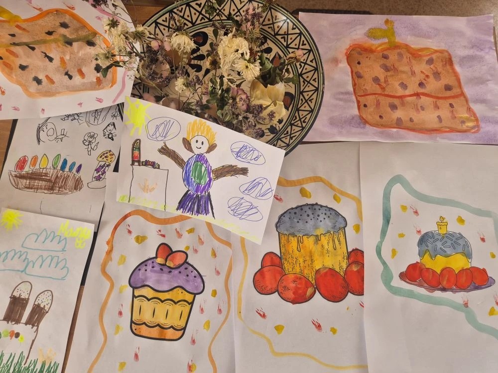 Юные гости освоили рецепты исконно русских блюд – от кундюм до оладий – и запечатлели пасхальный символ в акварели.