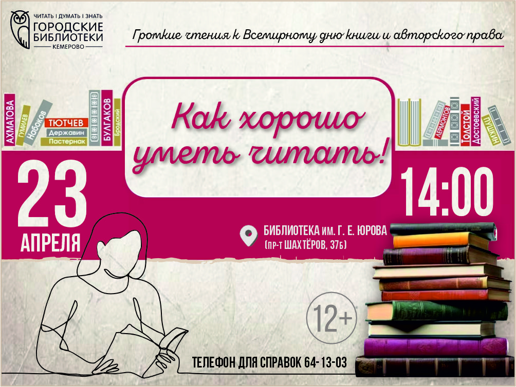 23 апреля в 14:00 в Библиотеке им. Г. Е. Юрова (пр-т Шахтеров, 37б) слова со страниц любимых книг зазвучат по‑новому…
